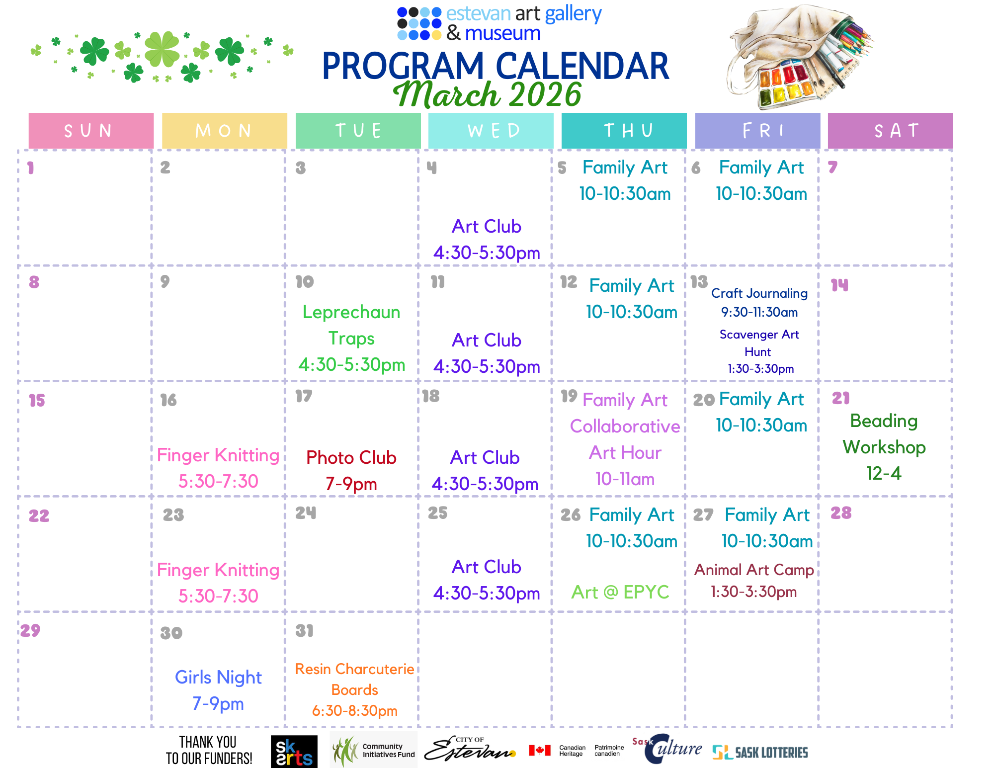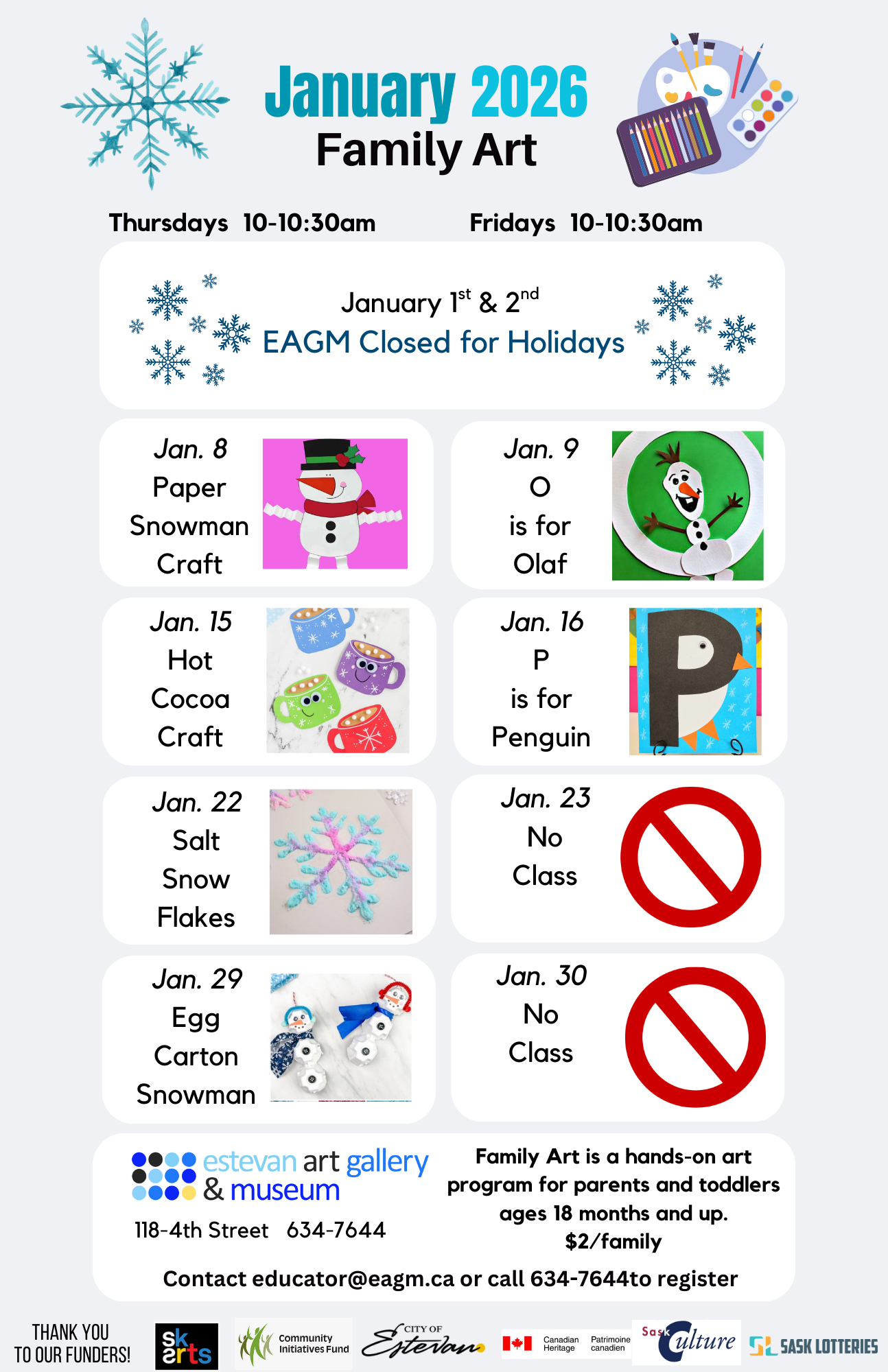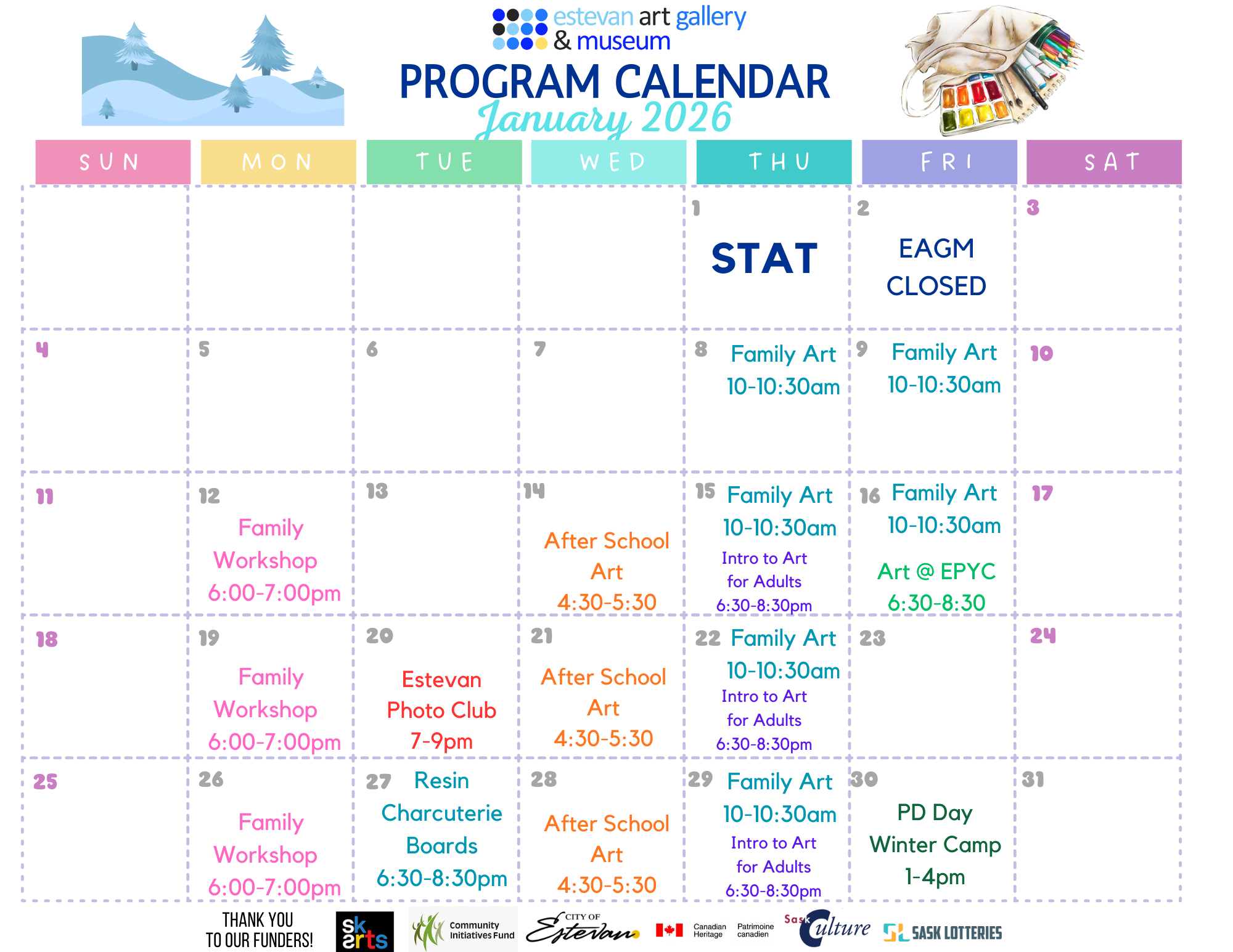 Estevan Art Gallery & Museum »January 2026 Program Calendar